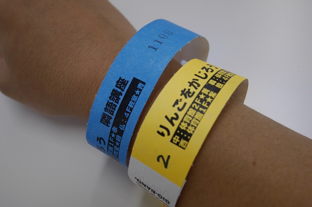 ドイツ語は、iPadを利用したオリエンテーション形式のゲームと、用意してきた看板やシートなどを利用したアナログなクイズをドイツ語に触れながら行いました。オリエンテーションゲームは、アクションバウンドというアプリケーションを利用したもので、実際に場所を移動しながら課題を解き進む宝探し的な要素のある活動でした。他に、たくさんのロゴの中からドイツ企業ではないものを選んだり、袋の中のドイツで発明された生活用品を手探りであてたり、デジタル機器をつかわないアナログな活動も行われました。これらを数人のチームで協力しながら進め、最後はお土産にドイツ語のかかれたバッジがプレゼントされるなど記憶にのこる時間となりました。