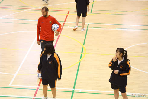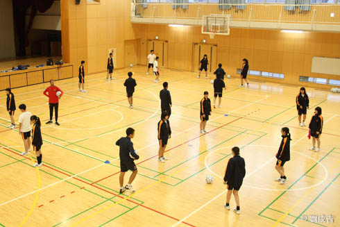 スペイン語は視聴覚室でヨーロッパ屈指のプロサッカーチームであるFCバルセロナと、バルセロナのあるカタルーニャ州の紹介が座学形式行われました。同じスペインの中に地域で大切にされている言葉や文化があることを知りました。その後、場所を体育館に変えて、サッカーボールを使った活動も行いました。FCバルセロナから派遣されたスペイン人ディレクターやスペインにサッカー留学していたコーチと、世界最高峰のサッカーチームのトレーニングの一端に触れられた生徒は本当に幸せだったと思います。