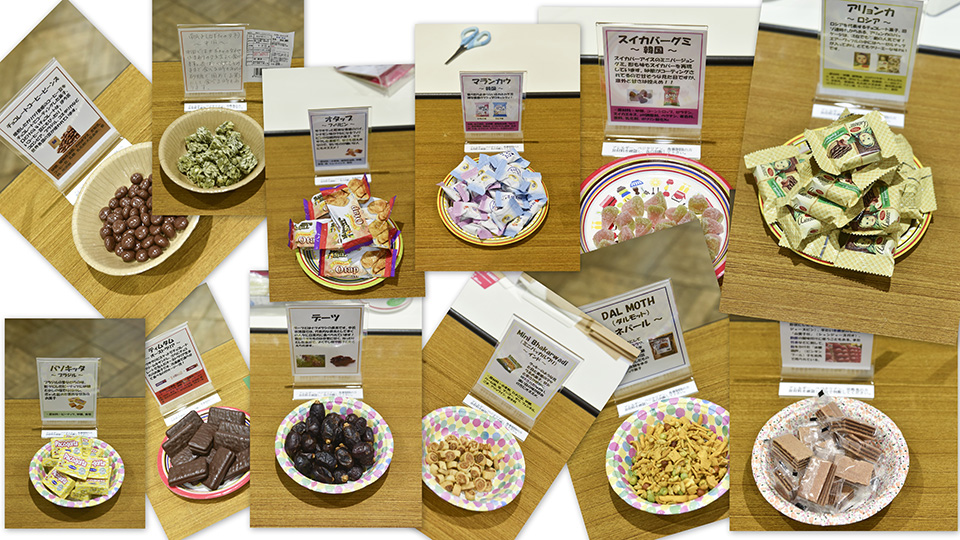 会場には、参加者とつながりのある地域のお菓子がずらりと並びました。インド、オーストラリア、韓国、中国、ネパール、フィリピン、ブラジル、そして日本。懐かしい!これ大好きだったんだ!これカレー味!このクッキーにクミンが入っている!休憩時間には、喜びや驚きの声が上がり、参加者の笑顔が広がりました。