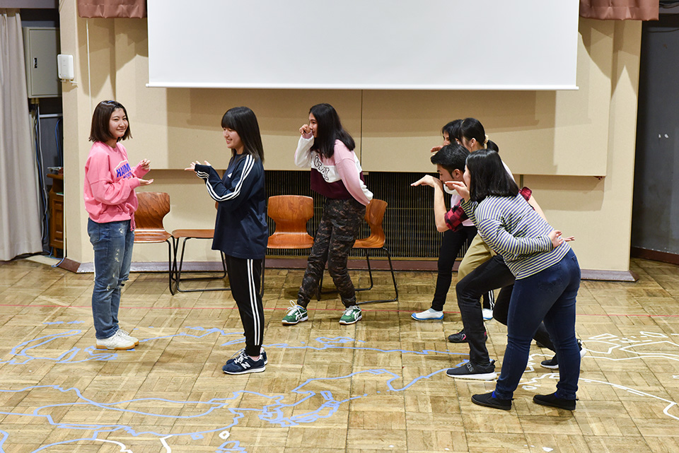 この目標を達成するために、合宿では、演劇的手法を取り入れたワークショップを中心に、さまざまなゲームや身体活動を通じて交流します。寝食をともにしながら、自分の個性を開放し、他人の個性を認め、グループの仲間と協力してパフォーマンス作品を創りあげることを通じて、ありのままの自分を表現したり、多様な人と関わったりする自信を深めていきます。
