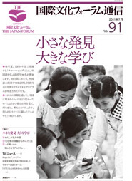報告 2011年7月28日 「小さな発見 大きな学び」 機関誌『国際文化フォーラム通信』第91号 PDF版を掲載しました 毎年夏、TJFが中国で実施する「サマーキャンプ」には、中国語を学ぶ高校生90名が参加します。10日間にわたり、中国語の授業や家庭訪問、同世代との交流などさまざまなプログラムが用意されています。 これらの体験を通して、中国に対するイメージはどう変わったのでしょうか。彼らは何を見て、何を感じ、考えたのでしょうか。 彼らが日々ノートに綴った「つぶやき」を紹介します。 ■特集 小さな発見 大きな学び ・わたしが見た中国 ・10日間の体験から学んだこと ・ふれあいから関わり合うプログラムへ 関連リンク