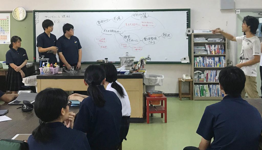 鹿児島の高校の「総合的な探究の時間」で行なっている「サバイバル理科」の授業は、環境に優しく生活の役に立つ知識と技術を体験的に学びながら、「目の前のものごとがどうやって起こっているか。そこにどんな原理原則が働いているのか」を意識し、理解していくように設計されています。