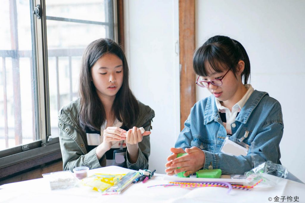 中高生たちは、約2時間かけて4作品の鑑賞を終えたあと、自分のなかに湧きあがってきた感覚や考えたことを、粘土や手芸用品、写真などの非言語の媒体を自由につかって表現。完成した互いの作品を鑑賞し、印象や発見したこと、作品に込めた意図などを語りあいました。