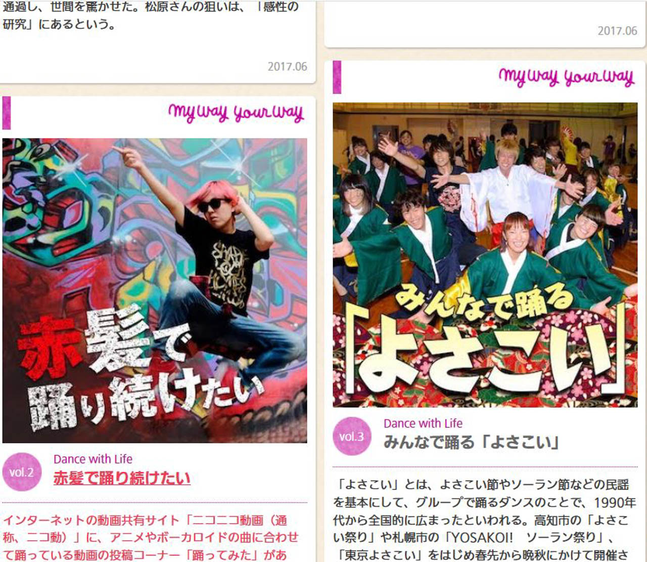 長く海外に暮らす日本人教師は1/365 の「バレンタインデー」で40人に友チョコを渡したという記事に刺激を受け、韓国の教師は「父の日」「母の日」の記事から、韓国にある「親の日」と比較する授業案をつくった。いちばん人気だったのは、My Way Your Way に登場する「なんちゃって制服」をデザイン、販売する社長の記事で、ワークショップでつくった案で実際に多くの授業が行われ、韓国、オーストラリア、ニュージーランドで高校生が考える制服のデザインができあがった。