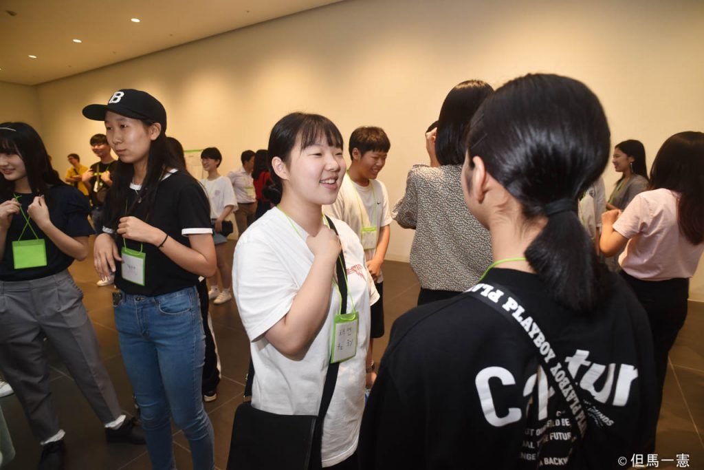 韓国での5日間を助け合いながら安全に過ごすことができるように、渡航前の注意事項を確認するとともに参加者間の関係構築を目的とする事前研修を、日本側参加者20名に向けて実施しました。参加者が決定してから集合するまでの間の約1ヵ月半、全員がSNSでの交流を通じて自己紹介やグループでの話し合いを重ねていたので、すぐに打ち解けた様子でした。遠方から上京する生徒の中には睡眠不足で体調を崩すものもいましたが、翌朝にはみな元気に渡航できました。