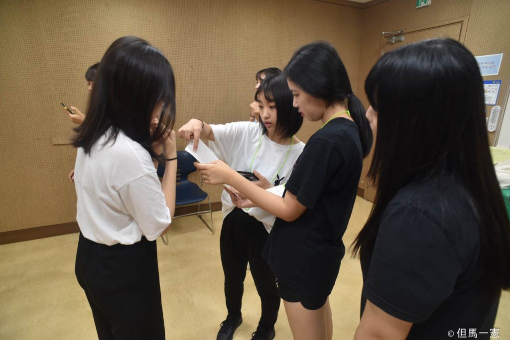 このプログラムでは、日韓混合のグループに分かれてダンスを練習し、4日目には本番のステージにあがります。短いスケジュールの中、ダンスは自分たちで計画し練習し完成させます。チームロゴから、ダンス音源、衣装、メークにいたるまで、発表会のステージでダンスを披露するために必要なことはすべて仲間と協力して準備します。大人がするのは、場を用意し、参加者の安全を守ることぐらい。手や口を出したくなるようなこともぐっとこらえて見守ります。すると、「自分の好きなことには真剣になれるが興味のないことは避けて通る」と言っていた中高生も、好きなことのために好きではないことにも向き合うようになります。伝えにくいことも伝えようと努力するようになります。今年は、OGOBの協力や助言も得て、最初から最後まで自分たちで考え、作ることができる場づくりに努めました。