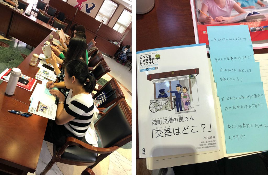 次は、『レベル別日本語多読ライブラリー』というレベル別の簡単な日本語で書かれた文章の本を使って、その文章の問題をつくります。