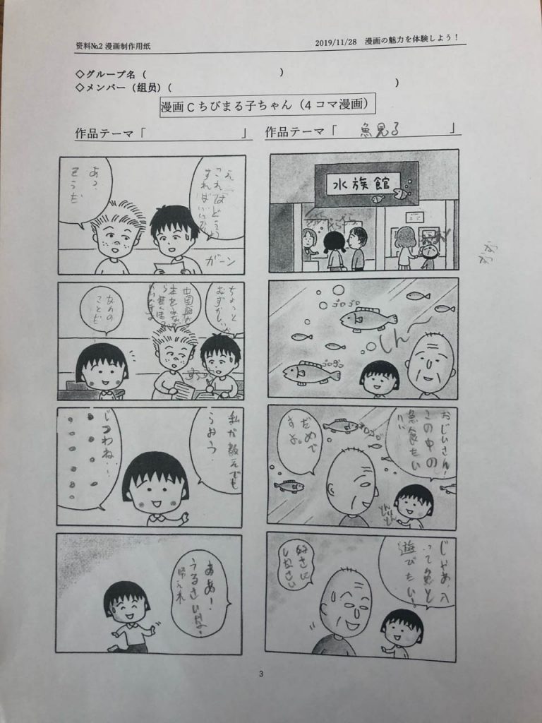 日本語のレベルが高い生徒が多かったので、漫画の吹き出しを空欄にし、書かれた擬音語や絵を見て吹き出しを自ら日本語で埋めて発表しました。