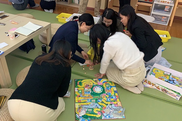 体験の場を有する学校の日本語の先生は、2019年7月と、10月に実施した研修(国際文化フォーラム主催)に参加し、文化を取り入れた授業実践に向けて、文化を取り入れるとはどういうことなのか、そのための理論と方法について講義を聞き、体験の場をどう活用できるのかアイディアを出し合いました。しかし、学校によって生徒の日本語レベル、人数、日本語の位置づけなど状況が異なるので、2回の研修の講師を務めた武田育恵氏と共に各校を訪問し、各校にあわせて、体験の場と体験の場に寄贈されている玩具や本などの活用方法を具体的に検討する「悩み相談会」を実施しました。相談会では、授業を行うにあたっての悩みなどさまざまなことを講師と一緒に話し合いました。