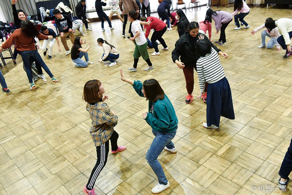 緊張した面持ちで会場に到着した31名を迎えたのは演出家、俳優、ダンサーからなるファシリテーターチームの5名と学生サポーターチームの4名。いろいろな言語でのあいさつ、じゃんけんなどアイスブレーキングのあとは、ダンスワークショップ。「知らない人と話すのは恥ずかしい」などと言っている暇もなく、ペアやグループになって、身体をフルに使った活動が続きました。
