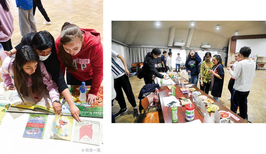 休憩時間にはいろいろな言語の絵本を手に取って見比べたり、ことばを教えあったりしていました。お菓子のテーブルでは、食べたことのないお菓子に興味津々。「どんな味?」「これ、おいしいよ」「どこのお菓子?」と声が上がっていました。