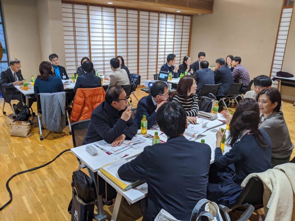 招聘事業では、これまで韓国の高校の校長に日本語教師1名が同行してきましたが、今回は2名にしました。校内で日本の学校との交流を推進するためには他教科の教師の後押しが重要であることがわかったからです。また、これまではグループにわかれて交流するときに、できるだけ多くの人たちと交流してもらいたいという思いから、1グループを複数校で構成していました。しかし、複数校の場合、具体的な話になりにくいという課題がありました。そこで、今回は、学校間交流に直接つながる機会となる日韓校長及び教師交流会(12/27)や韓国の中等教育で活躍する日本語教師との交流会(12/28)は参加者人数を調整し、1人対1人の環境を整えました。結果、交流を通じて具体的な話へと進展するケースが増えるなどの成果を得ました。