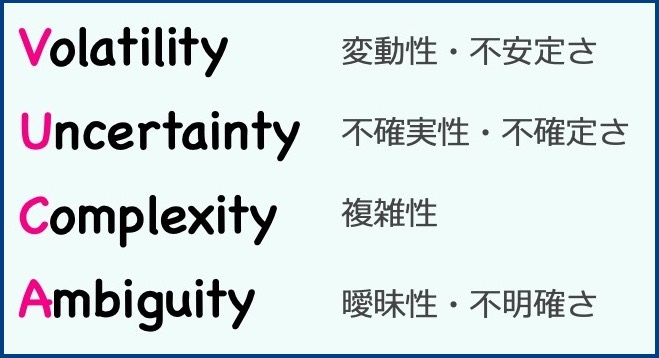 現代社会の特徴を表すキーワードとして、よくVUCAが挙げられる。