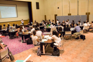 2014年8月12日、北浦和にある国際交流基金日本語国際センター(以下、NC)のホールに、韓国の中高校で日本語を教えている教師54名と日本の高校の韓国語教師20名、スタッフをいれて80名が集まり、1日の日韓教師交流イベントがスタートしました。