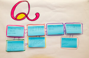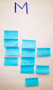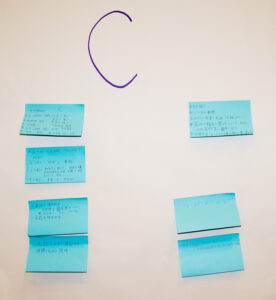 ポストイットに書き出したアイディアを、模造紙に貼りながら、1人ずつ「こんなの考えたんですけど」と話しながらシェアする。