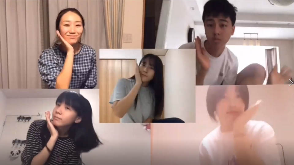 各チームの「マイキーワード作品」、「チーム作品」、「チームダンス」を連続して上映し、チームメンバーの感想を聞く流れで進行し、全員の顔が映るようにしました。