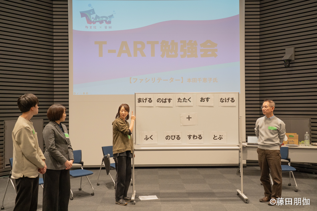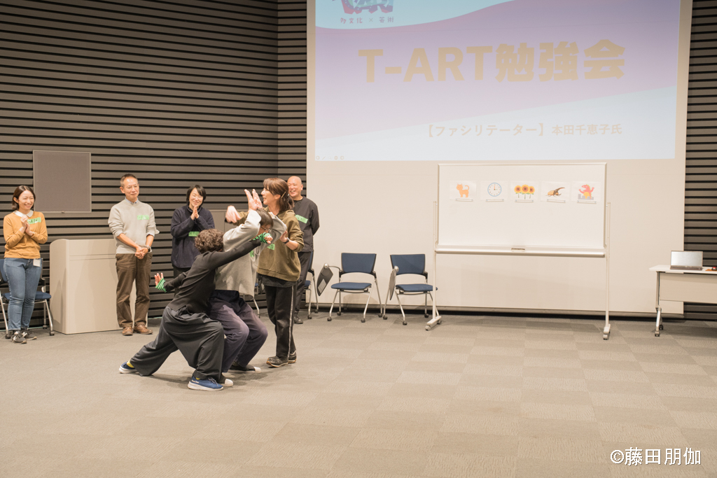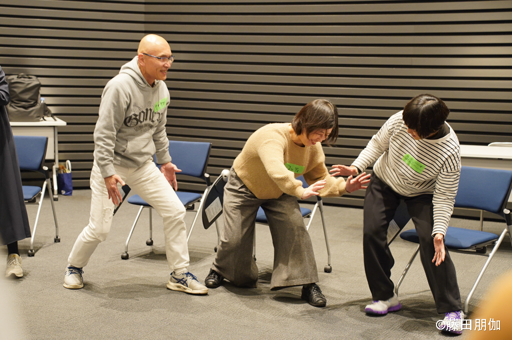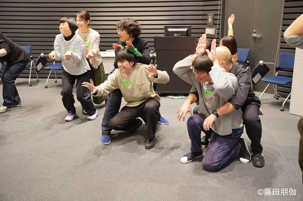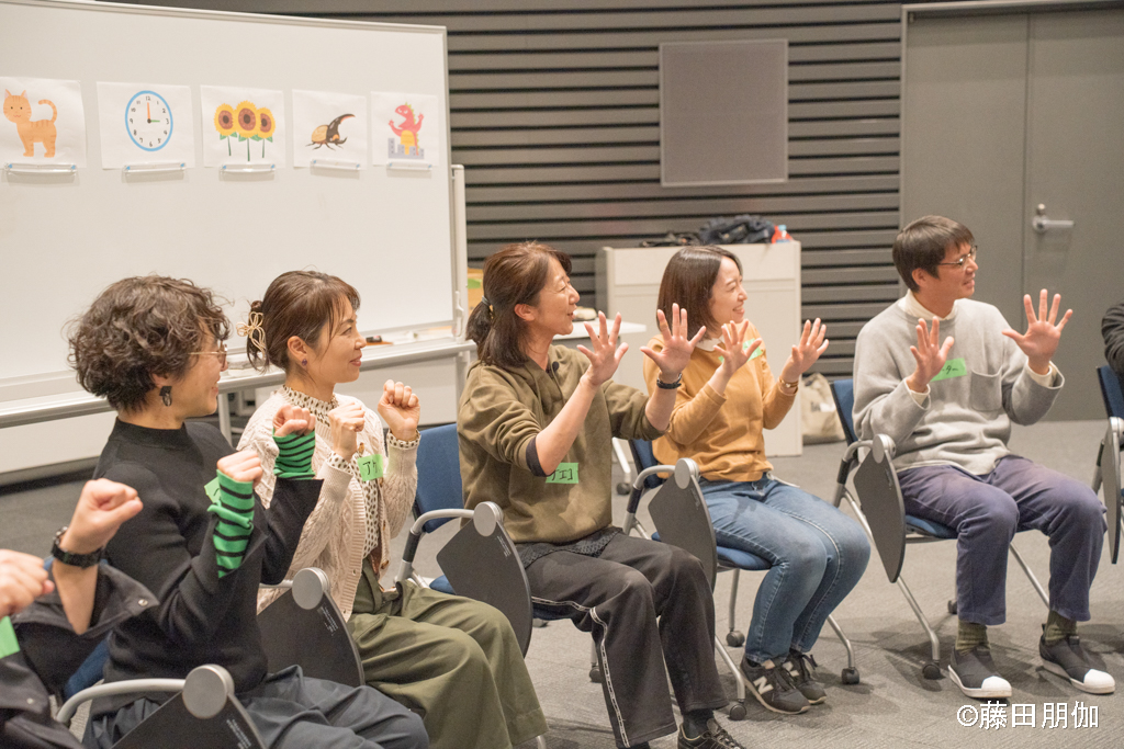 できます! アーティストたちはやさしい日本語を使います。また、実際にやって見せてくれます。参加者がお互いをリスペクトし、ことば、ジェスチャー、絵、実演などいろいろな方法で伝えようとする気持ちが大切です。