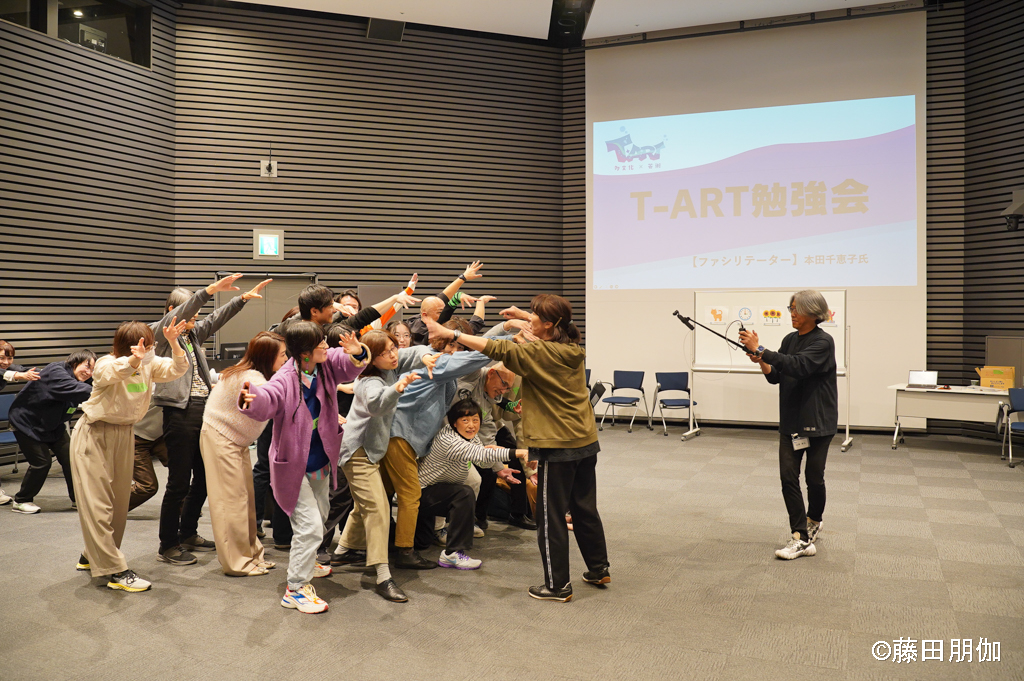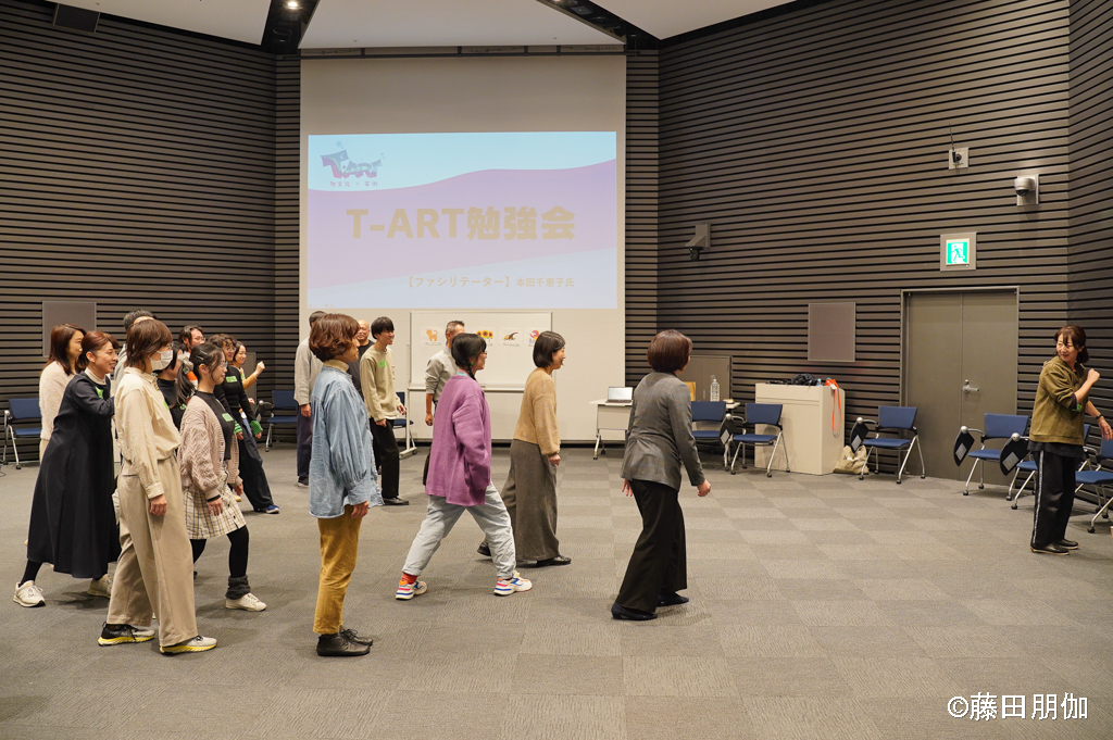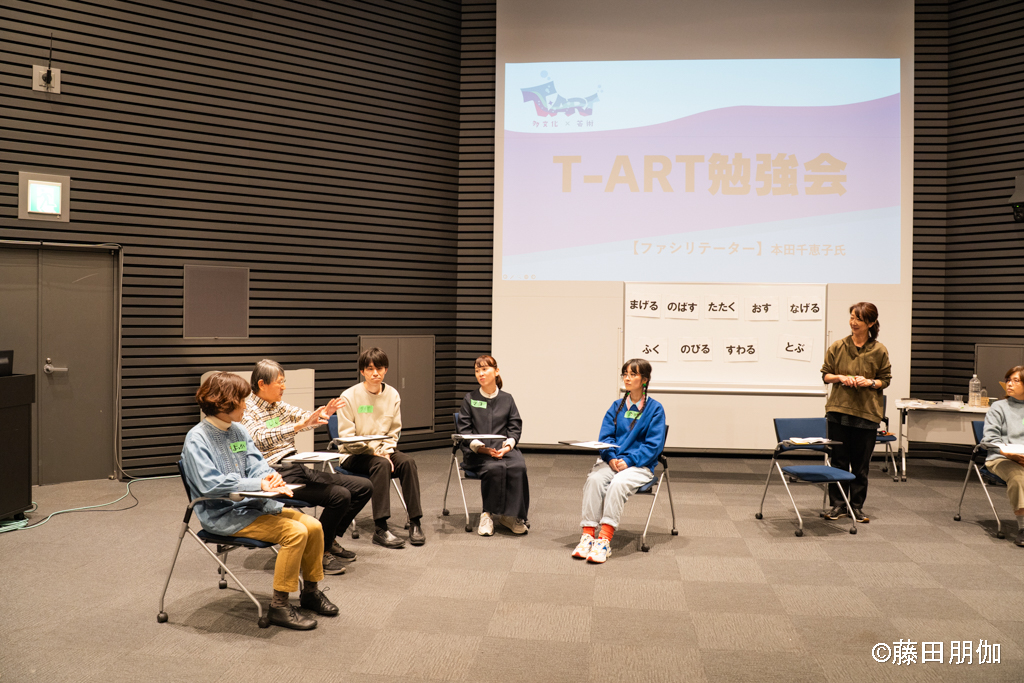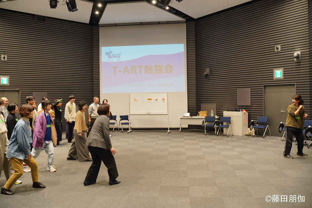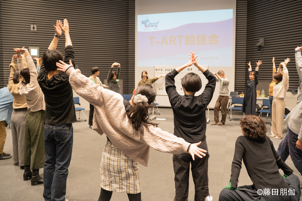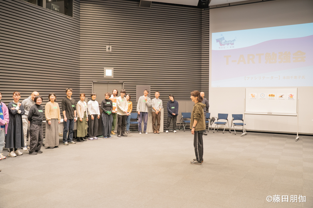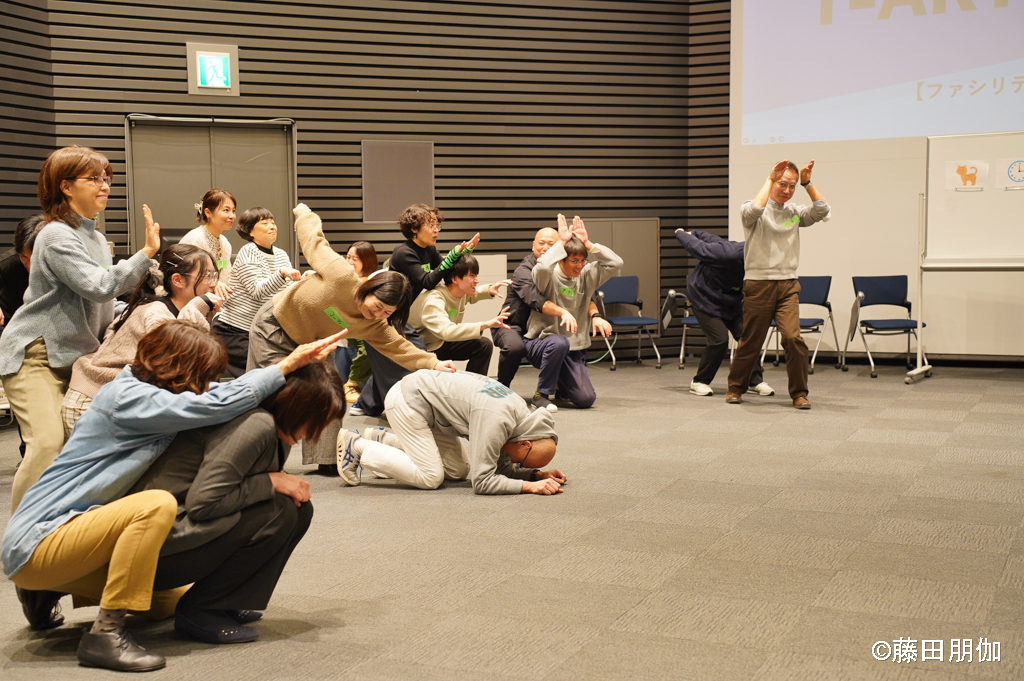 いっしょに生活しながら、演劇やダンスなどのアーティストがファシリテーター(リードする役)となって、参加者の次の交流活動をサポートします。