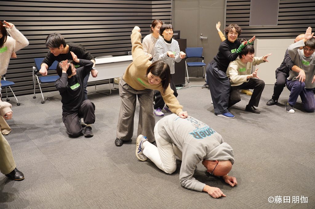 みんなでアイディアを出しながら、アクティビティをしているうちに、気がついたらパフォーマンスができています。ことばと身体の両方を使ってコミュニケーションするので、表現することに少しずつ慣れていきます。アーティストもサポートしてくれます。