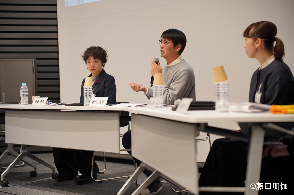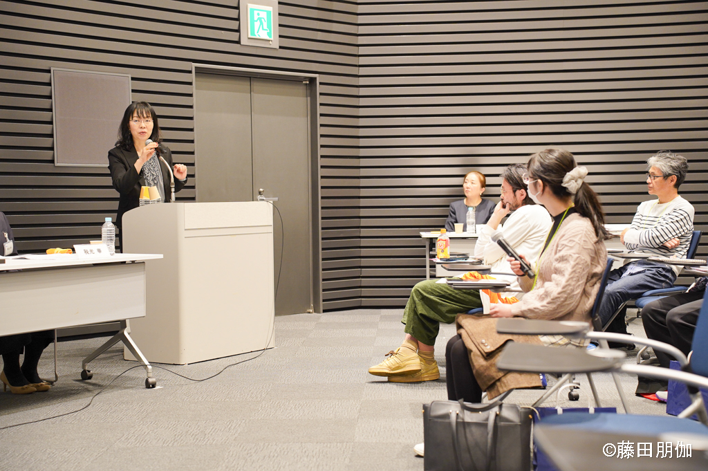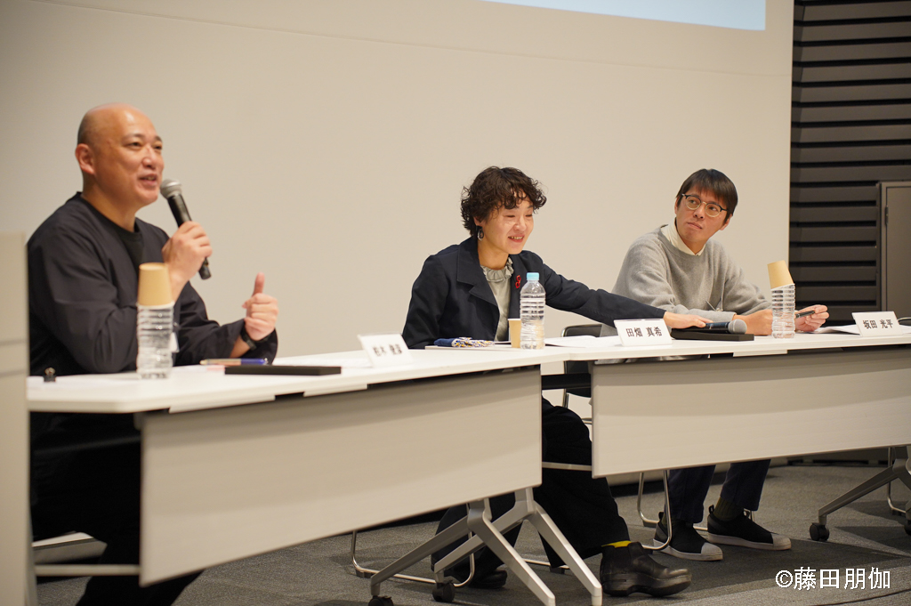 それに対し、田畑さんは「参加者はプロフェショナルではないので、彼ら/彼女たちから出てきたことばを作品にするからには、あまり演出すると“やらされ感”を持ってしまいます。それはお互いにとって幸せではないと思います」という意見を出しました。そして、「とうきょうPCAMP」でブラジルにつながりを持つ一人の参加者が納得のいく表現を自ら見つけていくエピソードを語りました。アーティストの価値観に載せるのではなく、アーティストと参加者の対話をミルフィーユのように重ねていくことが大事という見解を述べました。