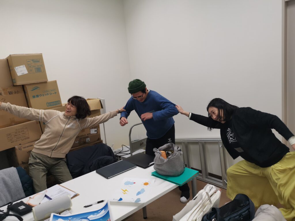 三つのワークショップを終えた後日、プログラム監修者とファシリテーターが集まって総括を行いました。はじめてのメンバーから編成されたファシリテーターチームでしたが、事前に入念に打ち合わせをし、プログラムの検討を重ね、現地でもギリギリまで細部にわたり擦り合わせをして臨んだワークショップ。その結果、下は3歳から上は60代までの60名の参加者に楽しんでいただけた様子で、初期の目的が果たせたのではないかと確認し合いました。