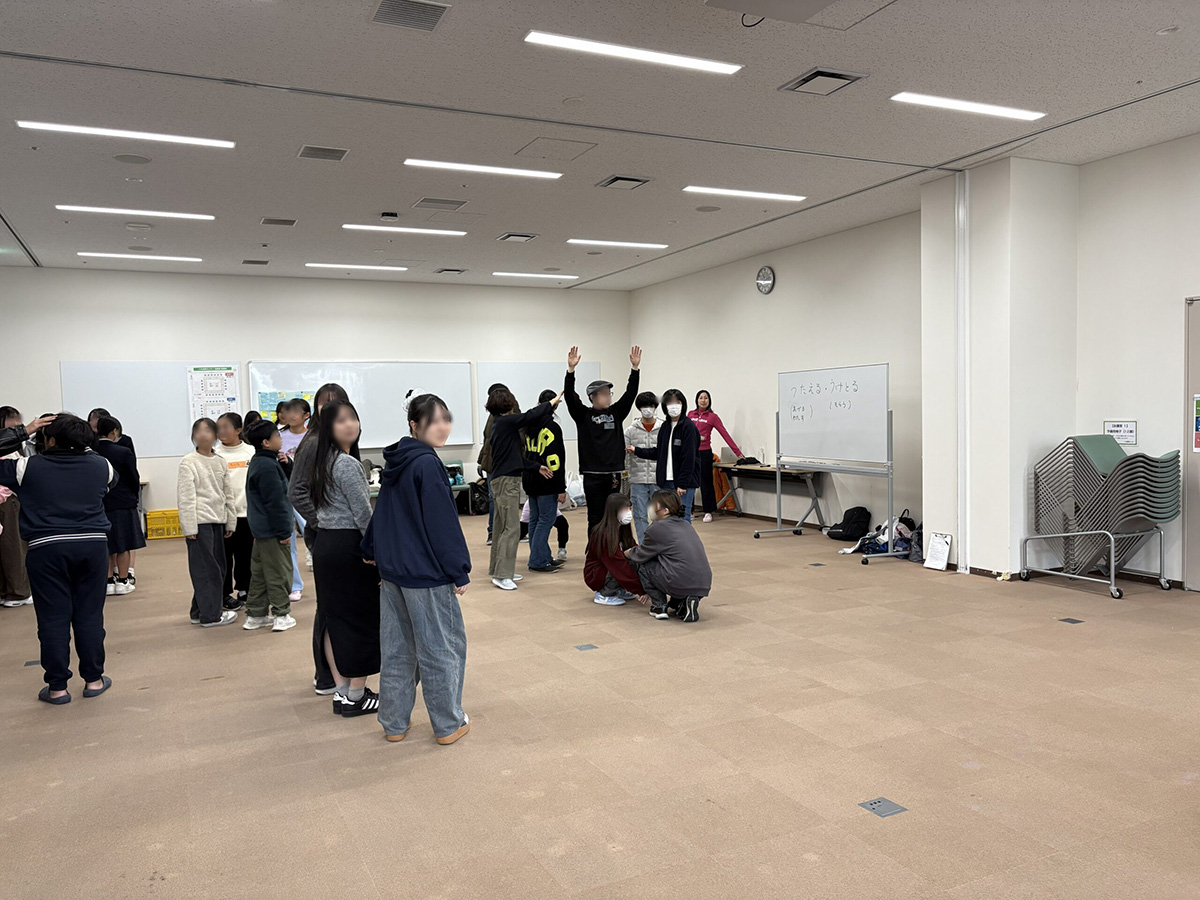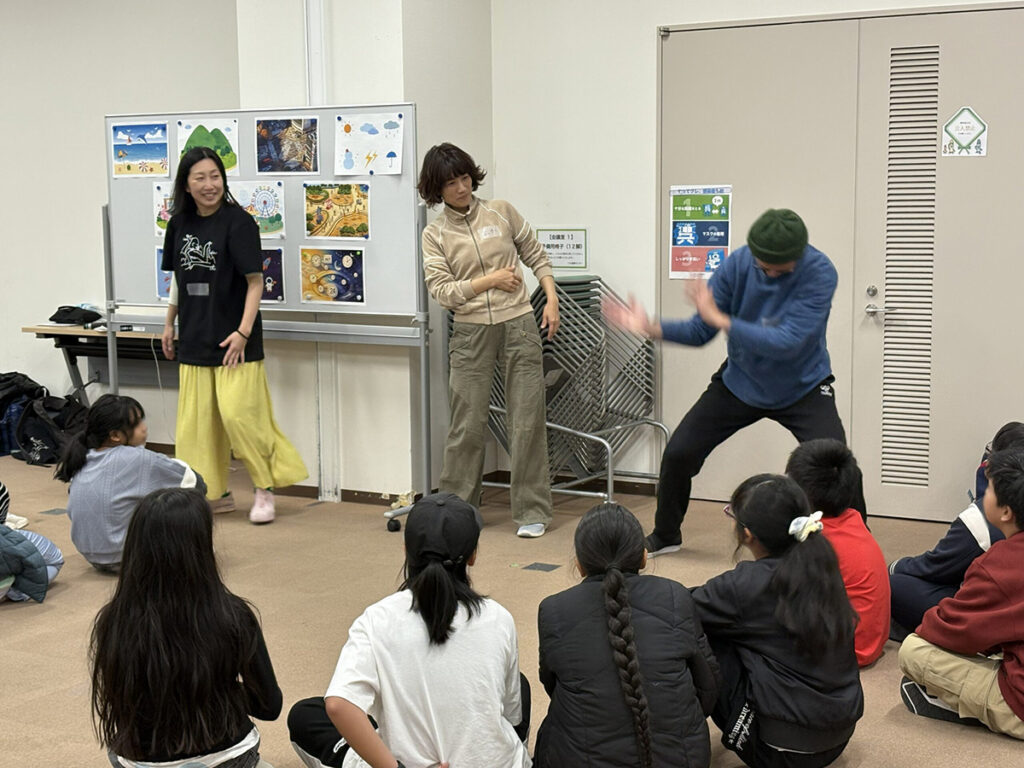 呉市国際交流協会は、宿題応援プロジェクトに参加する子どもたちが「違いを楽しみ、共に創造する社会」を築くための実践的な方法として、ダンスや演劇などの共同制作を通じて、さまざまなバックグラウンドを持つ者同士が感情や価値観を共有し、言葉を超えて一緒に作る・楽しむことを経験してほしいという目的から、TJFにファシリテーターの派遣とワークショップのプログラム提供を依頼しました。この協力依頼を受け、TJFは「T‐ARTワークショップ」を企画し、T‐ARTネットメンバーである3名のアーティストを派遣しました。