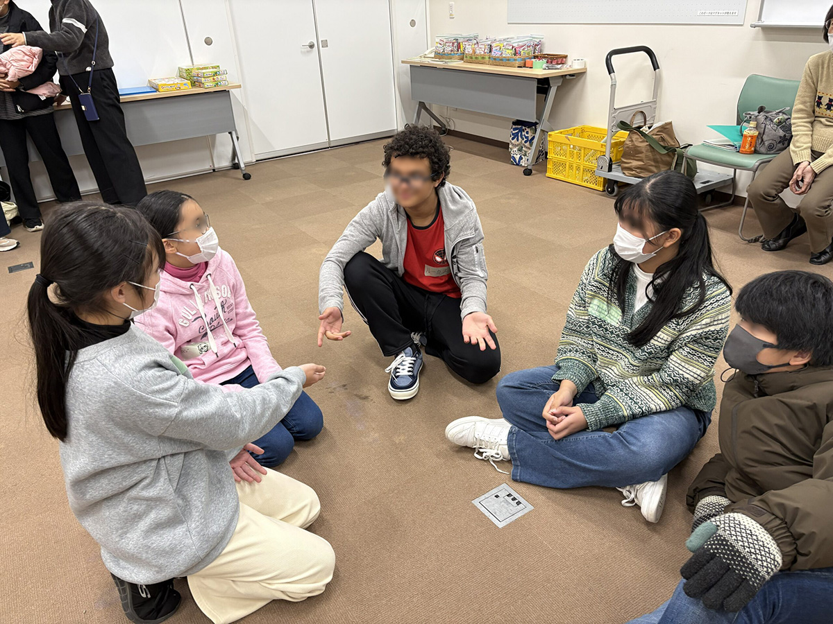 1チームを除いて、すべてのチームが作品を発表することができました。最後の振り返りタイムでは、「楽しかった!」「おもしろかった!」と子どもたちが手を挙げて元気な声で感想を言ってくれました。発表できなかったチームでは、まったく日本語ができないメンバーがいて、お題を理解するのに必要な共通言語がなかったことで躓いたということが後で判明。もっと早くに気づいてフォローできればよかった、という運営側の反省がありました。また最初からワークに入っていけない子どもが一人いて、隅のほうで支援員とほかのゲームをして遊んでいました。