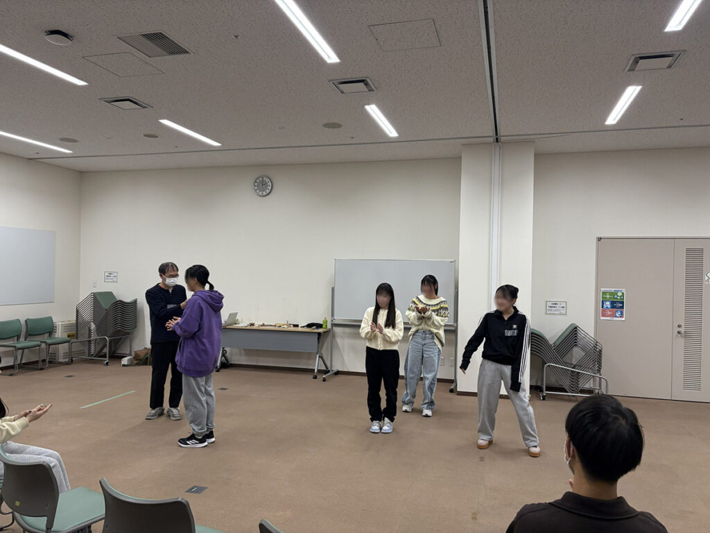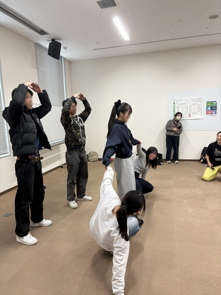 ・普段、机に向かって学習していることが多い分、体を使うことの楽しさと表現することでの人とのつながりを発見することができました。加えて自分の夢の保育士ともつながって、体を使った表現という新しい学びと発見ができました!